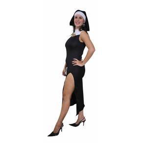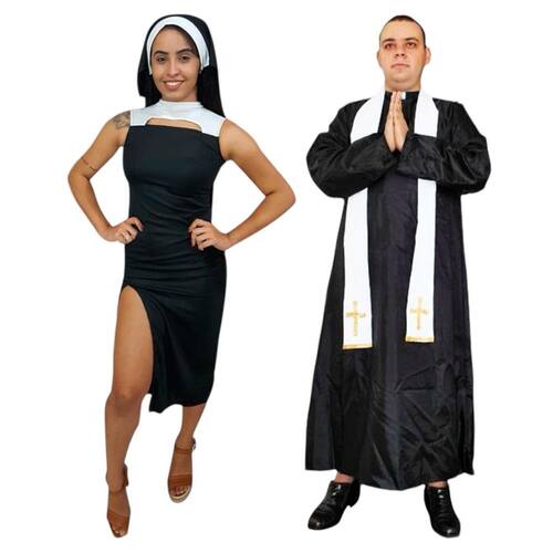 Fantasia de Casal Religioso Padre Diácono e Freira Noviça Rebelde Irmã Festa Carnaval Bloquinho Zumbi Halloween Terror - Preto - M