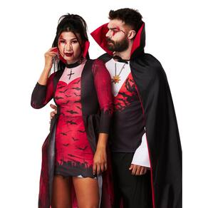 A Fantasia Drácula Vampiro Halloween Adulto Roupa e Capa Luxo está disponível em vários tamanhos, garantindo o ajuste perfeito para o vampiro temido e poderoso.