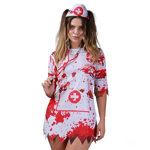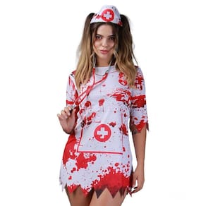 Assustadoramente incrível! Essa fantasia de enfermeira zumbi é perfeita para quem quer se destacar na noite de Halloween com muito estilo e um toque horripilante.