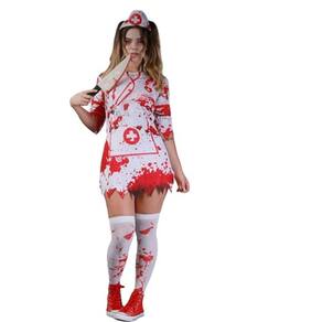 Fantasia Enfermeira Zumbi Halloween Feminino Vestido Chapéu