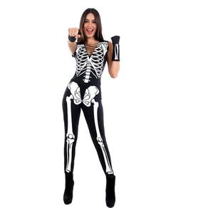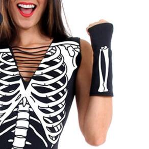 Fantasia Halloween Feminina – Esqueleto Luxo Macacão com Luvas