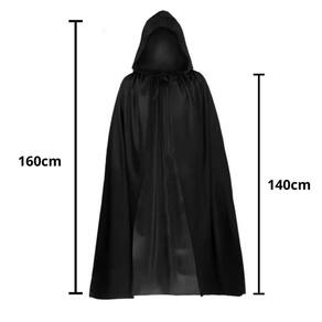 Contem 1x mascara v vingança 1x capa de cetim Capa preta lisa para fantasia festa a fantasia e halloween Que tal uma fantasia bacana para brincar o halloween ou festa a fantasia sem ter que gastar muito A capa é super versátil pode ser Utilizado para compor diversos personagens como, drácula, ceifador morte basta incluir alguns acessórios e pronto você já está pronto a para curtir sua festa a fantasia de forma criativa. Produzida com material super leve, não esquenta como tecidos mais grossos, produto maleável que não limita os movimentos permitindo que você curta sua festa tranquilamente. Para uso infantil a capa pode chegar até os pés, para uso adulto a capa fica mais curta. Medida capa: 1,40 cm Marca: Não Informado