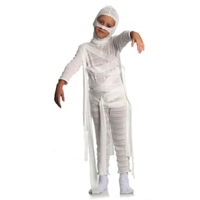 Efeito de Múmia Zumbi: Com as faixas pendentes e a touca com aberturas, seu filho estará pronto para personificar o terror de uma múmia zumbi assustadora.