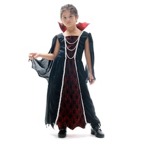 Esta é a oportunidade perfeita para sua criança explorar o mundo noturno e glamouroso das vampiras vitorianas no Halloween. Nossa Fantasia de Vampira Vitoriana de Luxo para Crianças garantirá que ela se destaque com autenticidade e estilo em qualquer evento da festividade.