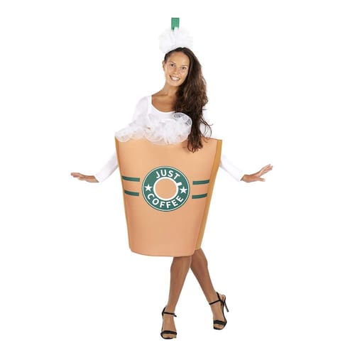 - Faça uma declaração: Alguém pediu café para levar? Vista-se como sua bebida favorita com esta divertida fantasia de café para adultos.