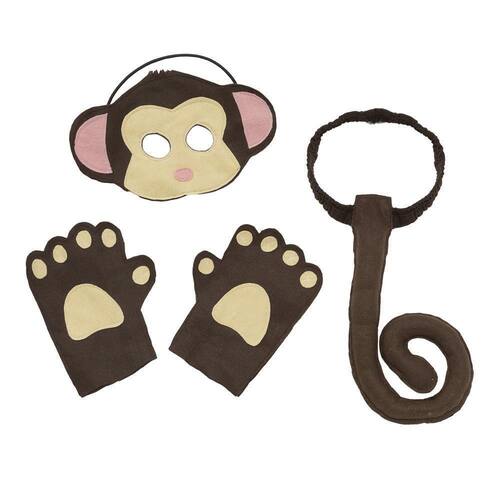Especificações técnicas: - Título: Kit Fantasia Dani Lessa Macaco - Inclui: máscara, patas e rabo - Tamanho único: serve para crianças de até 8 anos - Rabo e máscara possuem elástico - Material de qualidade e seguro para as crianças