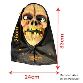 Contém: 1 unidade máscara Caveira Podre Assustadora de látex com Capuz