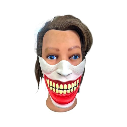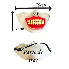A Meia Máscara Sorriso é engraçada. É ideal para brincar no Carnaval ou para uma festa a fantasia. A Meia Máscara Sorriso cobre a metade da face e é presa atrás da cabeça com um elástico , ela possui uma boca exagerada, e mostra um monte de dentes.