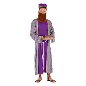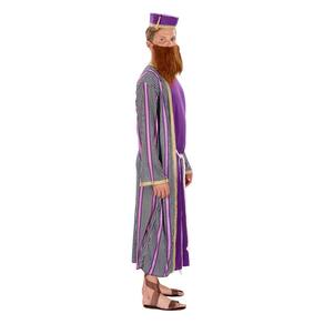 - Vestido chique masculino: basta adicionar ouro, incenso ou mirra à nossa fantasia roxa de Homem Sábio, perfeita para qualquer presépio!