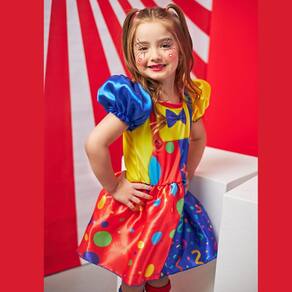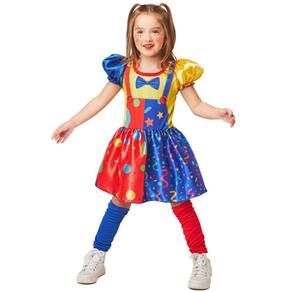 Detalhes do Produto: A fantasia é composta por um vestido curto com manga bufante , trazendo um design colorido, alegre e cheio de estilo. Para completar o look, acompanha um divertido nariz de palhaço , que dá o toque final à caracterização de sua pequena.