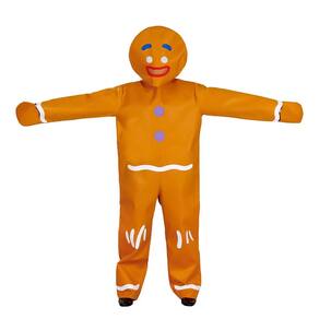 - O TRAJE INCLUI: macacão marrom com desenhos coloridos de goma e gravata borboleta, bem como um capacete sorridente de boneco de gengibre combinando.