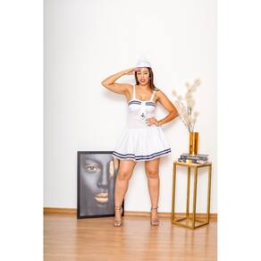 Fantasia Vestido Marinheira Feminina Adulto Comandante Capitão Aviador Carnaval - Branco - G