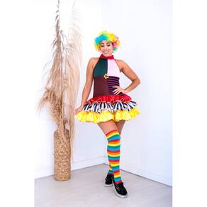 Fantasia Vestido Palhaça Adulto Feminina Carnaval Halloween Zumbi Terror Festa Circo - P - Sortido