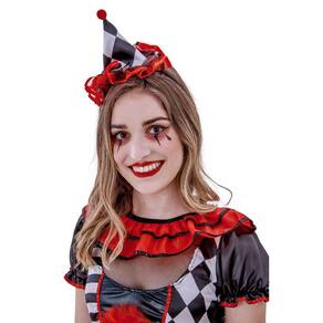 Fantasia Vestido Pierrot Macabro Adulto Palhaça Colombina Terror Cosplay Halloween Carnaval Festa Circo Zumbi - Estampado - GG