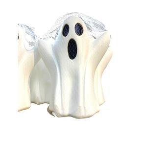 Com formato clássico de fantasma assustador, este enfeite de Halloween apresenta olhos e boca pretos, além de braços levantados, como se estivesse assustando alguém. Ele combina perfeitamente com a atmosfera sombria do Dia das Bruxas e será uma adição assustadora à decoração da sua festa.