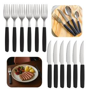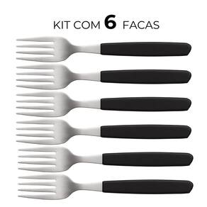 Faqueiro 12 Peças 6 Garfos 6 Facas Cabo Preto de Plástico Berlin Em Casa Tem