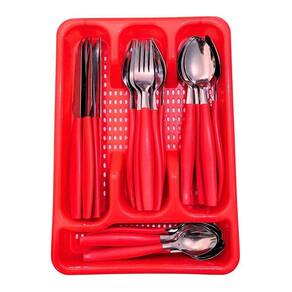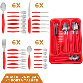 Faqueiro 24 Pçs Aço Inox C/ 1 Porta Talheres Berlim Vermelho