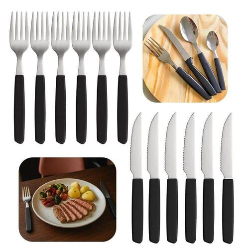 Faqueiro 24 Peças 12 Garfos 12 Facas Cabo Preto de Plástico Berlin Em Casa Tem