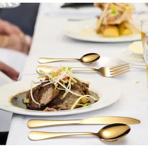 Kit de talheres com 24pçs Inox Dourado com Brilho e Suporte. Ideal para te acompanhar na rotina e receber seus convidados em casa. O kit é composto de 6 garfo, 6 faca e 6 colheres de sopa e 6 colheres sobremesa em aço inox dourado, e 1 suporte em aço inox cor Dourado . Medidas ; Garfo 20cm x 2,4cm x 2mm / Faca 22cm x 2cm x 2mm / Colher Mesa 20cm x 4,4cm x 2mm.Colher Cha/Sobremesa 14cm x 3cm x 2mm. Suporte de talheres 24cm x 13cm x 15cm. Uma combinação de design, resistência e qualidade. Uma escolha certa para recusar os talheres descartáveis de forma prática e estilosa. Os talheres são composto e produzidas em aço inox com banho especial que proporciona acabamento impecável e uma excelente apresentação. Cada talher medi uma media de 20cm tamanho normal para refeiçoes tirando de sobremesa que e menor. Embalado em plastico bolha e caixa. Todas as informações divulgadas são de responsabilidade do Fabricante/Fornecedor. A contra defeitos de fabricação,não cobre defeitos originados por mau uso. Marca: Não Informado