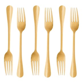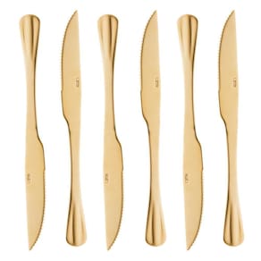 Características: Material Durável: Fabricado em aço inox de alta qualidade, garantindo resistência e durabilidade para o seu faqueiro. Conjunto Completo: Com 24 peças, incluindo facas para churrasco, garfos e colheres para mesa, além de colheres para sobremesa, atendendo a todas as suas necessidades. Acabamento Dourado Elegante: O detalhe em dourado confere um toque de sofisticação e luxo ao faqueiro, tornando suas refeições ainda mais especiais. Tamanho Ideal: As peças possuem dimensões perfeitas para uso cotidiano, facilitando o manuseio e garantindo conforto durante as refeições.