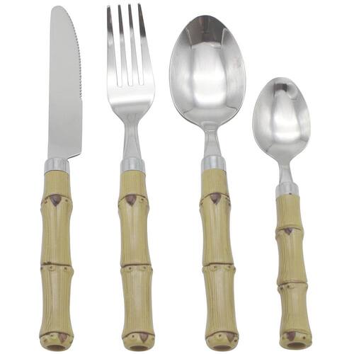Com uma estética inspirada em Bambu, super em alta atualmente na decorações de interiores, as peças desse conjunto irão garantir mais beleza e elegância para sua mesa posta, garantindo muitos elogios de seus convidados para almoços e jantares especiais. O faqueiro conta com seis peças de cada talher, sendo facas, garfos e colheres de mesa e sobremesa, garantindo o kit completo para suas refeições. As peças são fabricadas em Aço Inox AISI 430 de altíssima resistência e qualidade, com cabos em Polipropileno durável e confortável de utilizar.