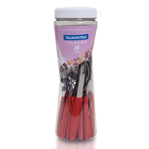 Contém: 06 un Ref 23361004 Faca de mesa 06 un Ref 23362000 Garfo de mesa 06 un Ref 23363000 Colher de mesa 06 un Ref 23367000 Colher para chá