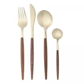 Faqueiro 24 Peças Organic Dourado Aço Inox com Cabo em Madeira Lyor - Na sua casa!