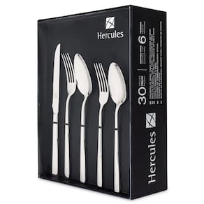 Faqueiro 30 Peças de Aço Inox com Estojo de Papelão Hercules MykonosA sofisticação Hercules pode chegar até sua mesa com o novo Faqueiro Mykonos. Acompanha utensílios indispensáveis para ajudar você a servir seus convidados com um toque ainda mais especial. Os Talheres possuem acabamento em Aço Inox 18/10. Talheres que garantem maior durabilidade no fio de corte, e por suas características de temperabilidade, não riscam as porcelanas. Acabamento em alto brilho e design contemporâneo. Com Lâmina temperada, ergonômico, cabos maciços e acabamentos entre os dentes. Podem ser lavadas diariamente na máquina de lavar louçasContém: 6 Colheres de Mesa / 6 Garfos de Mesa / 6 Facas de Mesa / 6 Colheres de Sobremesa / 6 Garfos de SobremesaCor: PrataMaterial: Aço inoxMedidas da embalagem: 28cm Comp. X 8cm Alt. X 22cm Larg.Peso: 2,56kg