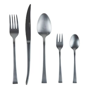 Parte da linha Pisa, este conjunto com 30 peças serve até 6 pessoas e é composto por: 6 Facas Mesa, 6 Garfos Mesa, 6 Colheres Mesa, 6 Garfos Bolo e 6 Colheres Chá.