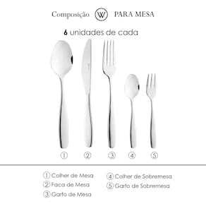Sirva suas refeições com requinte usando o Faqueiro 30 Peças de Aço Inox Cannes da Wolff. Um conjunto completo que alia elegância, resistência e praticidade para atender às exigências do uso diário e de ocasiões especiais.