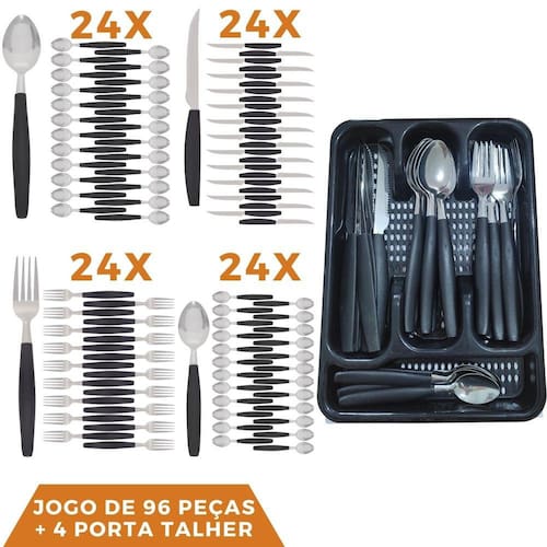 Faqueiro 96 Pçs Aço Inox C/ 4 Porta Talheres Berlim Preto