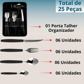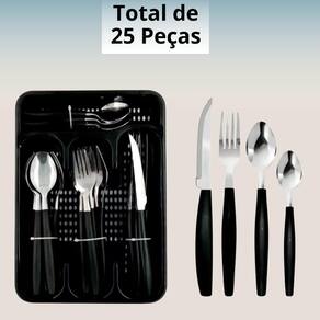 Faqueiro Aço Inox 25 Peças Preto Com Porta Talheres