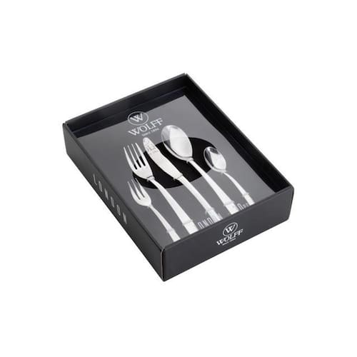 Ideal para as refeições diárias, o Faqueiro Wolff London é feito em aço inoxidável resistente e duradouro. Tem um design requintado com acabamento em alto brilho que tornam a ocasião ainda mais requintada. Faqueiro de uso diario, para quem não quer abrir mão da qualidade e requinte. Produtos especiais para servir em grande estilo Altura: 7,5cm Largura: 28,5cm Profundidade: 21,5cm Material: Aço Inox Cor: Prata Número de Itens: 30 Conteúdo Caixa contendo: 06 unidades de colheres, 06 unidades de Garfos, 06 unidades de facas, 06 unidades de garfos para Bolo e 06 unidades de colheres de chá. Ean: 7895730799927