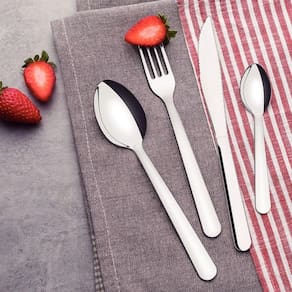 Talheres produzidos em aço inox que mantém a beleza, a higiene e a durabilidade.