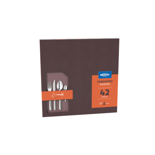 A linha Módena combina com estilo e funcionalidade, tornando cada refeição um momento único. O conjunto de talheres possui 42 peças, se adapta às reuniões mais formais e também aos momentos mais descontraídos. A linha de talheres Módena é feita de aço inoxidável, cabos arredondados e possuem um friso para trazer mais um detalhe à mesa. O faqueiro serve 6 pessoas e é composto por: Colher e garfo de mesa, faca de churrasco, colher e garfo de sobremesa, e colheres de chá e café. Produzidos no Brasil, os talheres garante qualidade e durabilidade por muito mais tempo. _x000D_