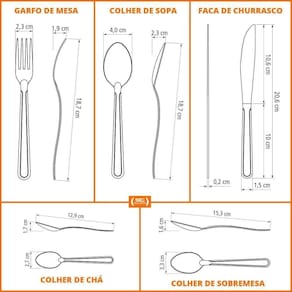- Talher produzido em aço inox que mantém a beleza, a higiene e a durabilidade.