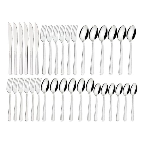 - Fabricado totalmente em aço inox de alta qualidade - Resistente à corrosão e ideal para uso diário - Talheres com acabamento que proporciona brilho e durabilidade - Pode ser levado à máquina de lavar louças - Design funcional com bordas arredondadas e manuseio confortável