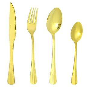 - Conjunto com 24 peças, sendo: - 6 Garfos - 20,5cm - 35gr - 6 Facas - 23cm - 50gr - 6 Colheres - 18,5cm - 40gr - 6 Colheres de Sobremesa - 12,5cm - 15gr - Talheres resistente que não amassam Espessura Inox 2mm - Facas afiadas - Excelente também para dar de presente - Disponível nas cores: Faqueiro Preto, Faqueiro Cobre e Faqueiro Dourado - Os Talheres preto, talheres cobre e talheres dourado, possuem pintura especial resistente.
