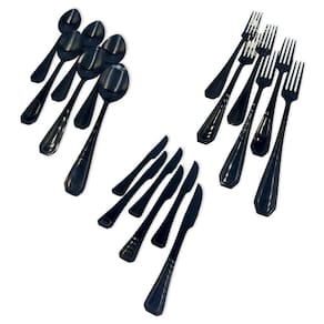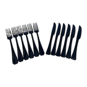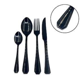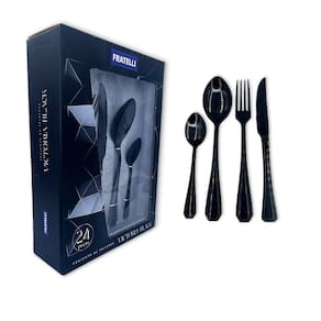 Faqueiro Conjunto Talheres Luxo Black 24 Peças Inoxidavel A mesa posta tornou-se uma tendência muito forte, e com isso alguns detalhes fazem toda a diferença na hora de fazer as suas refeições. O nosso Faqueiro Black tem tudo o que você precisa para tornar esse momento único, alinhando estilo e elegância. Todo feito em aço inox garantindo a qualidade, a classe e a durabilidade. A cor Black tem o toque de classe e modernidade. Você não precisa mais de uma ocasião especial para tornar sua refeição em um momento de satisfação. O kit contém 24 peças sendo 6 garfos de mesa, 6 facas de churrasco, 6 colheres de mesa e 6 colheres de chá. Suas dimensões são: Garfo de Mesa: Altura 21cm x Largura 2,5cmColher de Mesa: Altura 21cm x Largura 5cmFaca de Churrasco: Altura 23cm x Largura 2cmColher de Chá: Altura 15cm x Largura 3,5cm