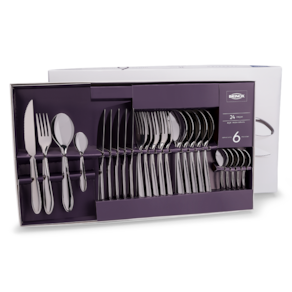 A linha Lyon possui frisos que valorizam cada detalhe e mix de produtos para mesa e servir, completos. Criando composições elegantes que valorizam todas as refeições. Feitos em aço inox, os produtos são resistentes à oxidação e podem ser levados à lava-louças. Na versão com 24 peças, o faqueiro contém os talheres necessários para servir seis pessoas: garfos e colheres de mesa, facas de churrasco e colheres de chá.