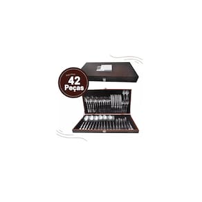 Faqueiro Inox 42 peças em estojo de madeira, prático e de fácil limpeza. Tenha almoços e jantares com toda a elegância que sua família merece!