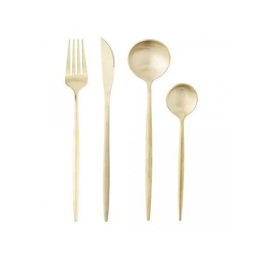 • 4 Facas de Carne 4 Garfos de Mesa 4 Colheres de Mesa 4 Colheres de Sobremesa