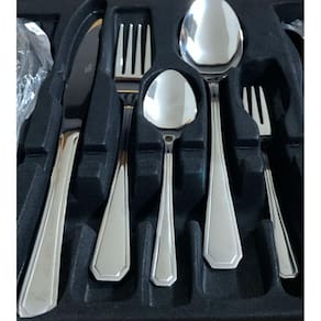 Marca: Euro 6- Garfos de Refeição 6- Facas de Refeição com Serrilha 6- Colheres Refeição 6- Colheres de chá 6- Garfos para bolo