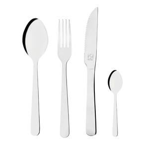Composição: - 6 Facas de mesa - 6 Garfos de mesa - 6 Colheres de mesa - 6 Colheres de chá - 6 Facas de sobremesa - 6 Garfos de sobremesa - 6 Colheres de sobremesa