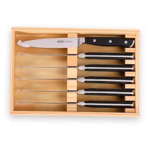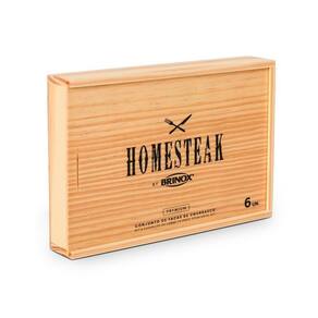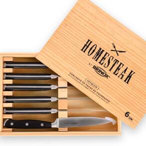 Faqueiro Homesteak Infinity 6 Peças Brinox Estojo de Madeira Com produtos selecionados, o faqueiro Homesteak foi desenvolvido para o uso em churrasco e para ser um item presenteável, devido a sua caixa de madeira. O Faqueiro Homesteak Infinity 6 Peças Brinox Estojo de Madeira, possui 6 facas sofisticadas de cozinha, precisas e com excelente balanço. A linha Infinity é para quem entende que um bom corte significa tudo na hora de preparar sua refeição. Possui lâminas em aço inoxidável temperadas, proporcionando maior durabilidade para o fio. Na espiga da lâmina em aço inoxidável maciço é injetado o ABS, o que garante mais estabilidade. Possuem também, proteção para os dedos e rebites, ambos em aço inoxidável, proporcionando cortes perfeitos. A faca para cozinha serve para cortar, picar, fatiar e o que mais for necessário com qualquer ingrediente. Nesta versão a faca possui 5 polegadas e medidas: 24x2,2x1,4 cm. Além disso, todos os produtos da linha podem ir à lava-louças. CUIDADOS: - Para manter os seus produtos de aço inox sempre brilhando, lave-os com esponja macia e sabão ou detergente neutro. - Produtos abrasivos como palha de aço e outros, poderão riscar ou prejudicar o brilho. - Enxague bem e seque em seguida para evitar manchas. - Usando máquina de lavar, recomendamos secar manualmente logo após a lavagem. - Recomenda-se o uso de água quente para um melhor resultado de brilho e limpeza. COMPOSIÇÃO: - 06 Facas de Cozinha ESPECIFICAÇÕES: - Material: Aço Inox - Linha: Homesteak - Composição: 01 Faqueiro 6 peças - Peso: 1,09 Kg - Garantia: 90 dias para vícios e defeitos de fabricação Aqui você está em 1º Lugar