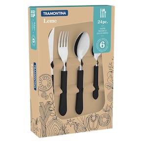 Com o Faqueiro Tramontina Leme com Lâminas em Aço Inox e Cabos de Polipropileno Preto 24 Peças você irá garantir uma mesa completa e muito mais bonita! Produzidas com lâminas em aço inox altamente durável e resistente e com cabos em polipropileno, as peças que compõem o faqueiro são de manuseio super confortável e garantem uma refeição cheia de estilo e personalidade, devido a cor preta. Elas ainda são muito fáceis de limpar e podem ser lavadas na máquina de lavar louças. O faqueiro ideal para fazer parte das suas refeições diárias!