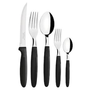 Faqueiro inox 30pc ipanema preto Se você gosta de ter talheres bonitos e clássicos para acompanhar as suas refeições, o faqueiro tramontina ipanema com lâminas em aço inox e cabos de polipropileno preto com pote plástico 30 peças é a escolha perfeita. As peças dão aquele toque charmoso a sua cozinha e deixam o jantar mais atraente, pois possuem cabos de polipropileno na estilosa cor preta. As lâminas são produzidas em aço inox e oferecem maior durabilidade ao fio devido ao tratamento térmico a que são submetidas. É um faqueiro super prático, pois pode ir à máquina de lavar louças e conta com um pote plástico que pode ser utilizado tanto para armazenar os talheres quanto para organizar sua cozinha. Sua mesa fica muito mais completa com a tramontina