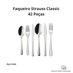Leve elegância e praticidade à sua mesa com o Faqueiro Euro Home 42 Peças. Completo e refinado, é perfeito para almoços e jantares, seja em família ou em encontros com amigos. Destaques do ProdutoMaterial de Alta Qualidade: Produzido em aço inoxidável, garantindo durabilidade e resistência.Design Sofisticado: Cabos com acabamento elegante que valorizam a apresentação da sua mesa.Conjunto Ampliado: Serve até 6 pessoas, incluindo talheres adicionais para maior versatilidade.Embalagem de Veludo: Ideal para armazenamento ou como presente especial.Fácil de Limpar: Pode ser lavado na lava-louças.Conteúdo da Embalagem6 Garfos de Refeição6 Facas de Refeição com serrilha6 Facas de Refeição sem ponta6 Colheres de Refeição6 Colheres de Chá6 Garfos para BoloEspecificações: Cor: InoxQuantidade de Peças: 42Modelo: Strauss do Vendedor: 30 diasAdquira agora o Faqueiro Euro Home 42 Peças e impressione com uma mesa sofisticada e funcional Marca: Não Informado
