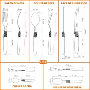 - Seu cabo é em polipropileno na elegante cor preta e proporciona um manuseio super confortável, além de garantir uma mesa muito mais estilosa.