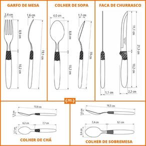 - Seu cabo é em polipropileno na elegante cor preta e proporciona um manuseio super confortável, além de garantir uma mesa muito mais estilosa.